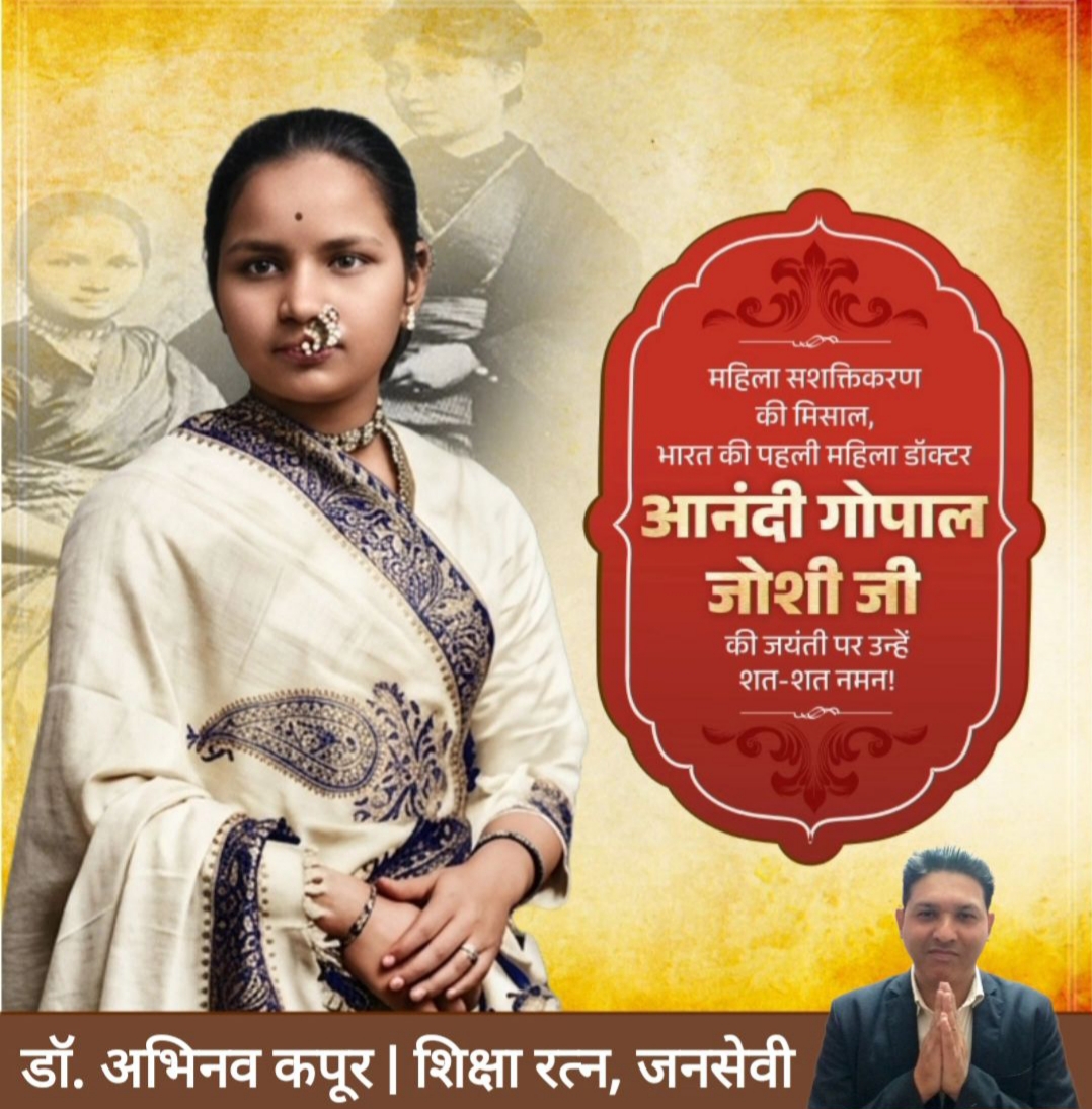 देश की पहली महिला चिकित्सक आंनदी गोपाल जोशी की जयंती पर उन्हें सादर नमन : डॉ. अभिनव कपूर