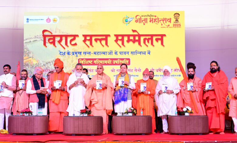 कुरूक्षेत्र में आयोजित अन्तर्राष्ट्रीय गीता महोत्सव में शामिल हुए मुख्यमंत्री धामी