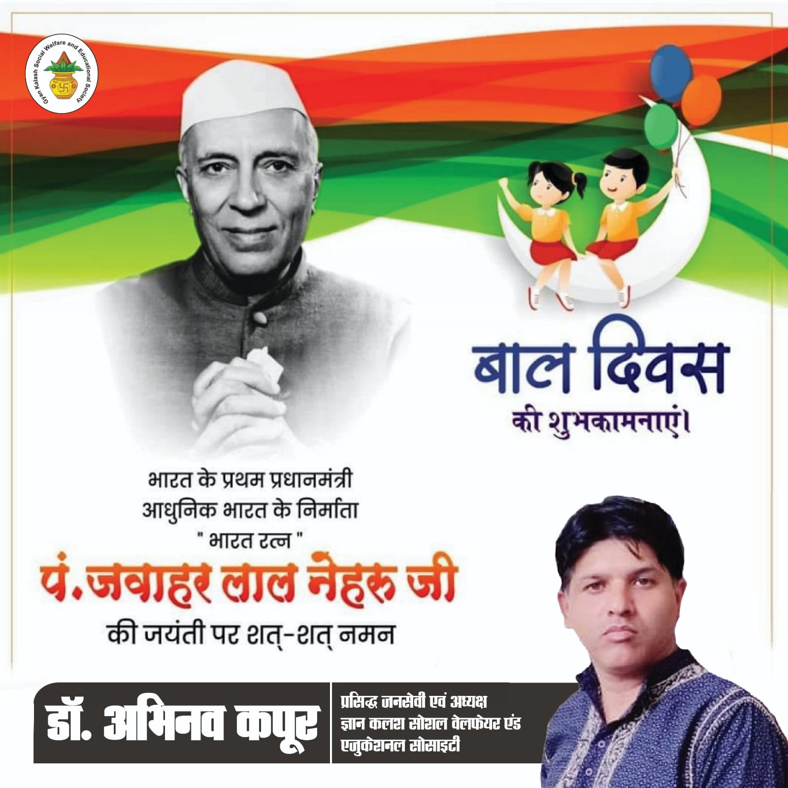 जनसेवी डॉ. अभिनव कपूर ने कहा- भविष्य के राष्ट्रनिर्माता, हमारी नन्ही पीढ़ी का भविष्य उज्जवल एवं सफल हो, इस ‘बाल दिवस’ पर ईश्वर से यही प्रार्थना है।