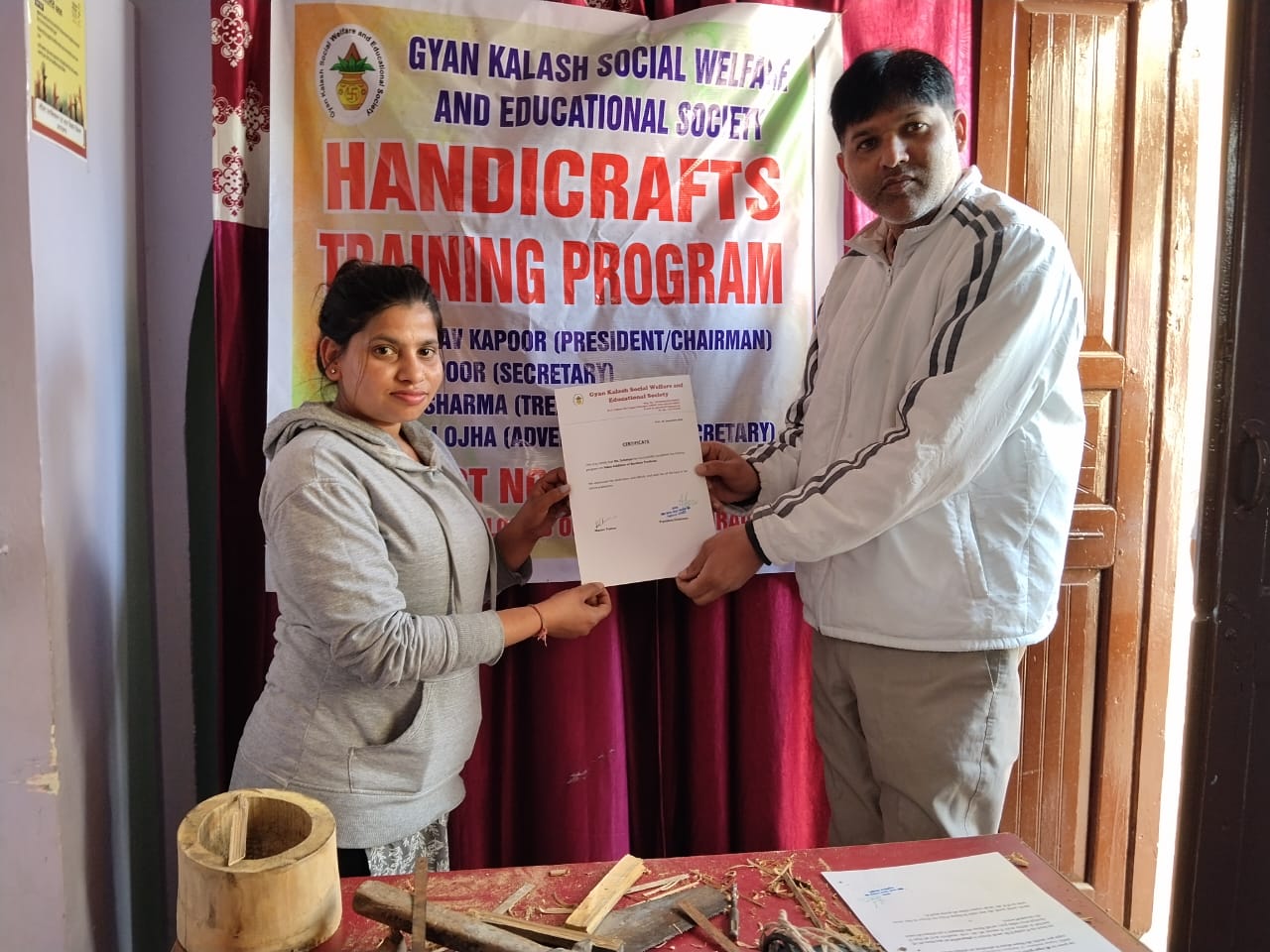 वहीं ज्ञान कलश सोशल वेलफेयर एंड ऐजुकेशनल सोसाईटी के अध्यक्ष एवं चेयरमैन डॉ. अभिनव कपूर द्वारा प्रशिक्षक राहुल कुमार एवं सभी प्रतिभागियों को प्रमाण पत्र प्रदान किये गये। इस अवसर पर डॉ. अभिनव कपूर ने कहा कि प्रशिक्षक राहुल कुमार के योगदान ने प्रशिक्षणार्थियों को बांस शिल्प की नई तकनीकों से परिचित कराने में सहायता की। यह कार्यक्रम प्रशिक्षणार्थियों के आत्मनिर्भर बनने की दिशा में महत्वपूर्ण कदम साबित हुआ। आपकी मेहनत और प्रतिबद्धता ने इस प्रशिक्षण को सफल और प्रभावशाली बनाया है।