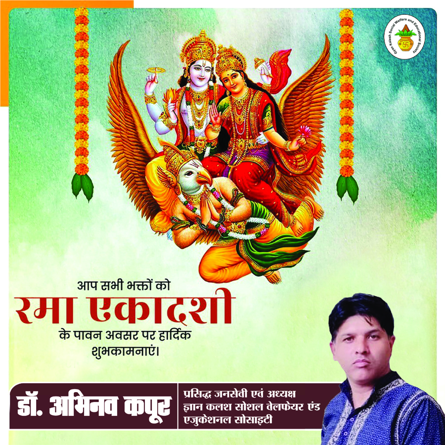 आप सभी को ‘रमा एकादशी’ के पावन अवसर पर हार्दिक बधाई एवं शुभकामनाएं : डॉ. अभिनव कपूर
