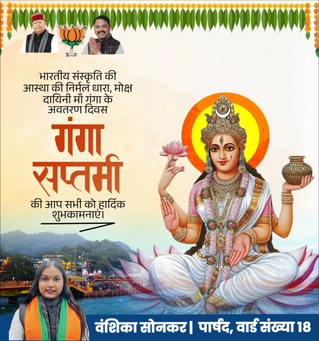 ‘गंगा सप्तमी’ के पावन अवसर पर पार्षद वंशिका सोनकर ने दी शुभकामनाएं