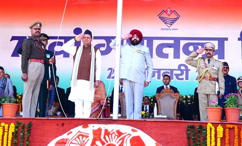 देहरादून। गणतंत्र दिवस के अवसर पर राज्यपाल लेफ्टिनेंट जनरल गुरमीत सिंह (से नि) ने सोमवार को परेड ग्राउंड में आयोजित गणतंत्र दिवस के मुख्य समारोह में राष्ट्रीय ध्वज फहराया और भव्य परेड की सलामी ली। कार्यक्रम में राज्यपाल लेफ्टिनेंट जनरल गुरमीत सिंह (से नि) और मुख्यमंत्री पुष्कर सिंह धामी द्वारा उत्कृष्ट प्रदर्शन करने वाले पुलिस अधिकारियों को पदक अलंकरण कर सम्मानित किया गया साथ विभिन्न अधिकारियों को भी उनकी सराहनीय सेवाओं के लिए सम्मानित किया।