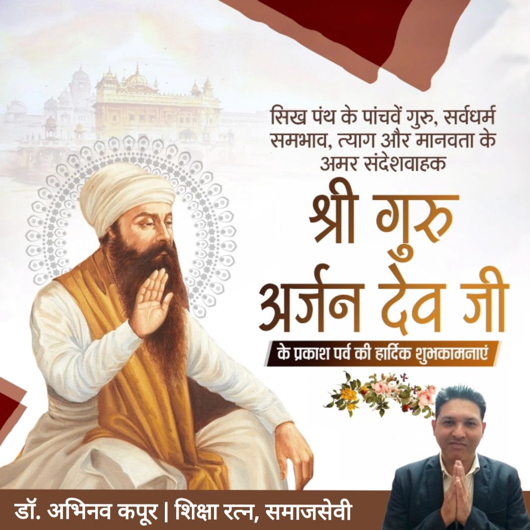 गुरु अर्जन देव के प्रकाश पर्व पर जनसेवी डॉ. अभिनव कपूर ने दी शुभकामनाएं