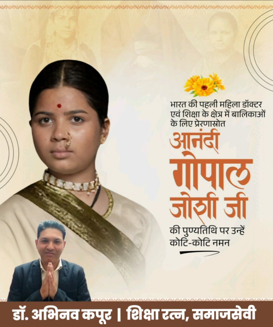 भारत की पहली महिला डॉक्टर आनंदी गोपाल जोशी की पुण्यतिथि पर सादर नमन : डॉ. अभिनव कपूर