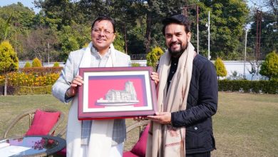 सांसद अनुराग सिंह ठाकुर ने मुख्यमंत्री धामी से की शिष्टाचार भेंट