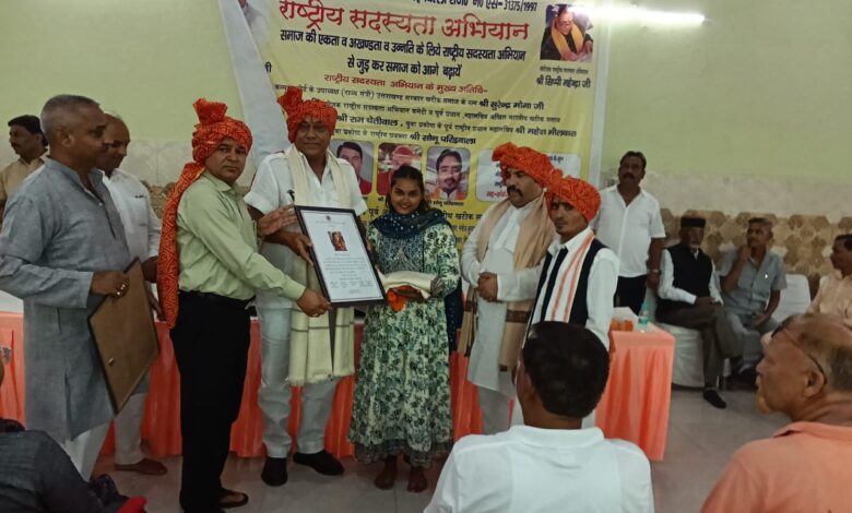 अखिल भारतीय खटीक समाज द्वारा आयोजित कार्यक्रम में सम्मानित हुईं वंशिका सोनकर